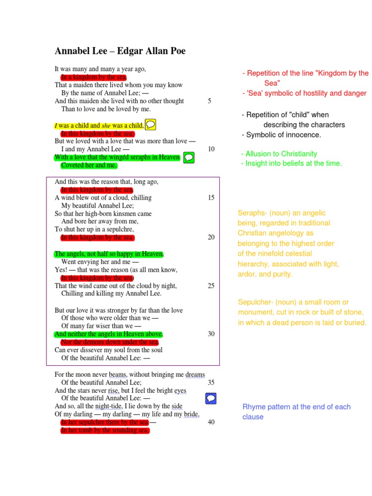 Annabel Lee Annotated Pdf Religion And Belief